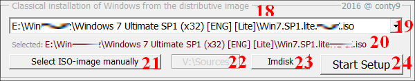 19. Choosing distribution image. The search is performed by wildcards *.iso, *.nrg, *.bin (these formats are supported by ImDisk). All available options are added to the drop-down menu.