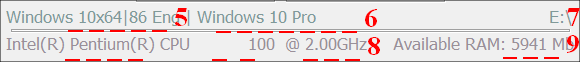 5. Information about the system: for WinPE boot view (BIOS/UEFI), OS/PE type (Windows/WinPE Indication), bit (x86, x64, if supported x64 x86 subsystem, then h64|86), Russian or not ( Rus/Eng, for others - DOS-code page display, eg CP: 936 for the Chinese WinPE).