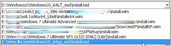 such as install.swm, install1.swm, install2.swm etc.) unlimited installXXX.wim (install_7x86.wim, install_8x86.wim etc, on a wildcard install*.wim) and installXXX.esd